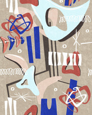 A psychedelic wallpaper design with surrealistic shapes and elements hanging in an imaginary illustrated universe. A perfect addition to our Mid-Century style collection, MESCALINE is a daring abstract art pattern that can be easily use as a feature wall art.