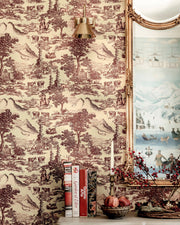 This pretty paper takes traditional French Toile de Jouy, first popular in the late 18th century, and reinterprets it for the present day with a Tyrolean twist. A typically mountainside pastoral scene showing intricate mountains, forests, farmers and cows all rendered in a soft, two-colour colour print.