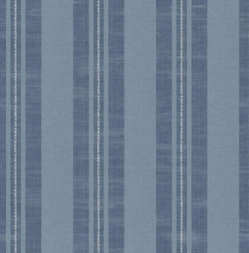 Seabrook Linen Stripe Sky Blue And Denim Wallpaper